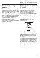 Warning and Safety instructions The Miele "Waterproof system" protects from water damage provided the following conditions have been met: – the machine is correctly plumbed in and connected to the electricity supply. – if a fault has been identified, the machine must be examined by a competent person before further use, and repaired if necessary. Faulty components must only be exchanged for Miele original spare parts. Only when these parts are fitted can the safety standards of the machine be guaranteed.