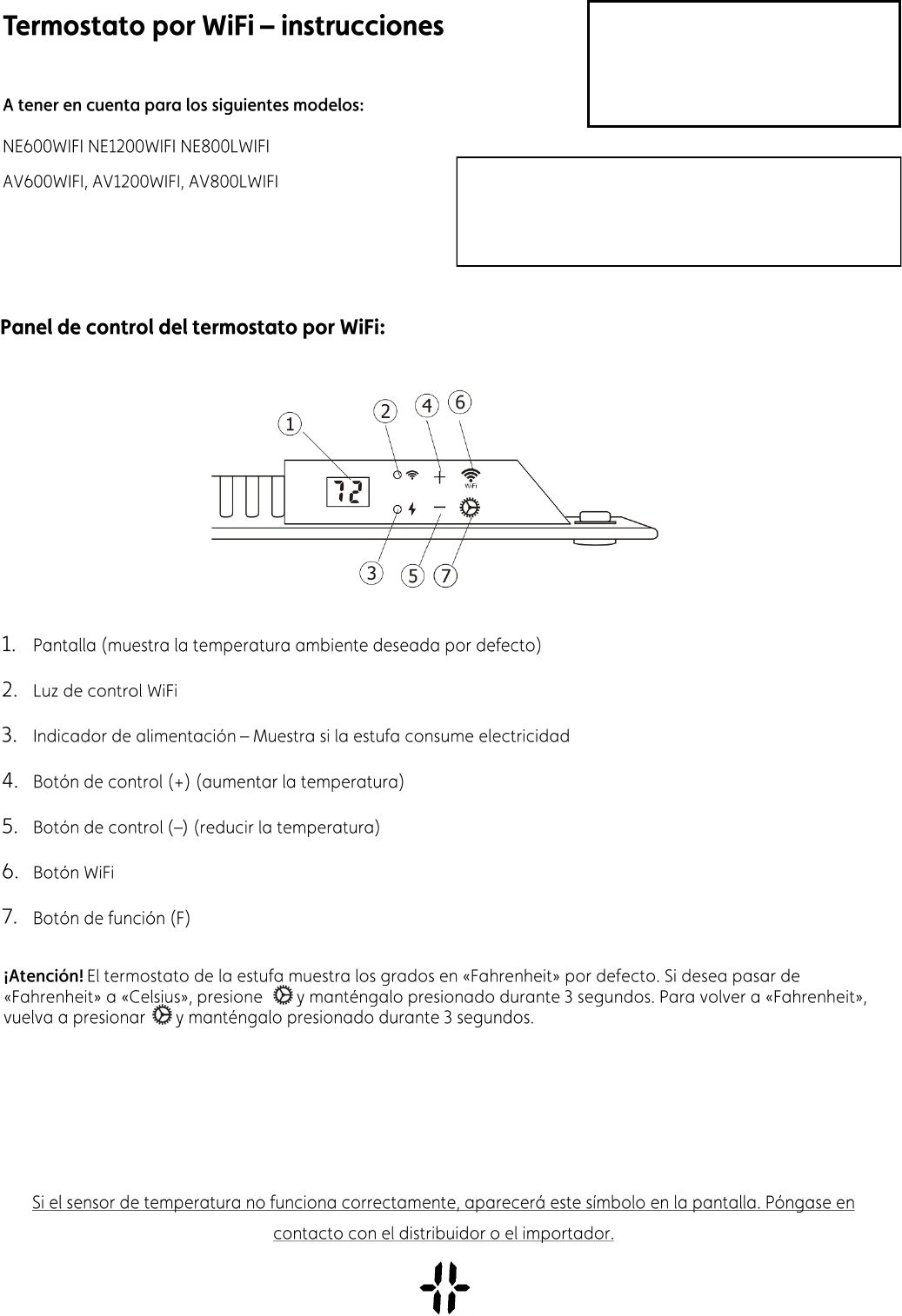 Advertencia: Antes de encender la estufa, debe estar jada a una pared. Si la estufa no se instala correctamente o se