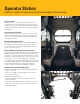 Operator Station 3UPERIOR COMFORT TO KEEP YOU PRODUCTIVE THROUGHOUT THE WORK DAY Superior Comfort #OMFORT AND EASE OF OPERATION HAVE BEEN DESIGNED INTO EVERY ASPECT OF THE OPERATOR STATION 4HE WIDE SPACIOUS INTERIOR AND UNCLUTTERED mOOR PROVIDE A COMFORTABLE WORK ENVIRONMENT WITH EXCELLENT HEAD SHOULDER AND LEG ROOM TO KEEP PRODUCTIVITY HIGH AND FATIGUE LOW Sealed and Pressurized Cab /PERATORS SPEND LONG HOURS IN THE MACHINE 4HE NEW OPTIONAL SEALED AND PRESSURIZED CAB KEEPS DUST OUT AND CLEAN AIR IN F