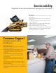Serviceability 3IMPLIlED SERVICE AND MAINTENANCE SAVE YOU TIME AND MONEY Easy Service #ONVENIENT SERVICE FEATURES MAKE MAINTENANCE EASY REDUCING YOUR DOWNTIME s 2EAR DOOR OPENS DEGREES FOR EASY ACCESS TO BOTH SIDES OF THE ENGINE s #OOLING PACKAGE TILTS UP TO PROVIDE EXCELLENT ACCESS TO THE ENGINE COMPARTMENT s #AB TILTS REARWARD FOR EASY ACCESS TO ALL HYDRAULIC PUMPS MOTORS VALVES LINES AND HYDRAULIC TANK s $AILY MAINTENANCE POINTS ARE EASILY ACCESSIBLE s 7IRES ARE COLOR CODED AND NUMBERED FOR EAS