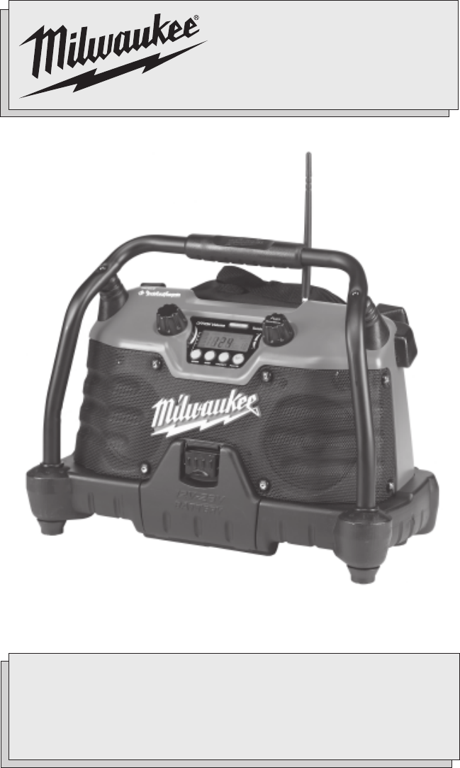 - OPERATOR'S MANUAL MANUEL de L'UTILISATEUR MANUAL del OPERADOR Cat. No. No de cat. Cat. No. 49-24-0280 JOB SITE RADIO RADIO DE CHANTIER RADIO EN EL SITIO DE TRABAJO TO REDUCE THE RISK OF INJURY, USER MUST READ AND UNDERSTAND OPERATOR'S MANUAL. AFIN DE RÉDUIRE LE RISQUE DE BLESSURES, L'UTILISATEUR DOIT LIRE ET BIEN COMPRENDRE LE MANUEL DE L'UTILISATEUR. PARA REDUCIR EL RIESGO DE LESIONES, EL USUARIO DEBE LEER Y ENTENDER EL MANUAL DEL OPERADOR.