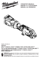 OPERATOR'S MANUAL MANUEL de L'UTILISATEUR MANUAL del OPERADOR Cat. No. / No de cat. 2922-20 M18™ FORCE LOGIC™ PRESS TOOL WITH ONE-KEY™ OUTIL DE PRESSAGE M18™ FORCE LOGIC™ WITH ONE-KEY™ HERRAMIENTA DE PRENSA M18™ FORCE LOGIC™ WITH ONE-KEY™ WARNING To reduce the risk of injury, user must read and understand operator's manual. AVERTISSEMENT Afin de réduire le risque de blessures, l'utilisateur doit lire et bien comprendre le manuel.
