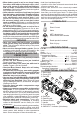 •Remove any adjusting key or wrench before turning the power tool on. A wrench or a key left attached to a rotating part of the power tool may result in personal injury. •Do not overreach. Keep proper footing and balance at all times. This enables better control of the power tool in unexpected situations. •Dress properly. Do not wear loose clothing or jewelry. Keep your hair and clothing away from moving parts. Loose clothes, jewelry or long hair can be caught in moving parts.