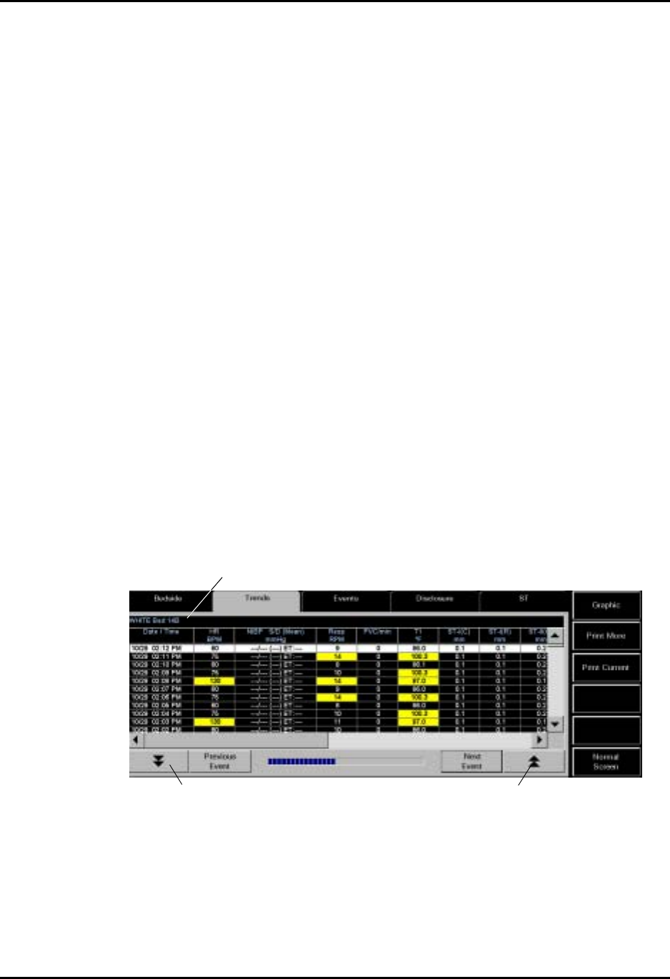 Trend data is recorded at user specified intervals, and when an NIBP measurement is