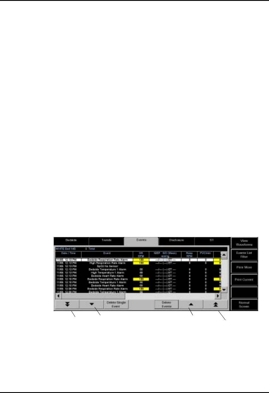 The patient’s last name, patient bed number and number of events is displayed in the