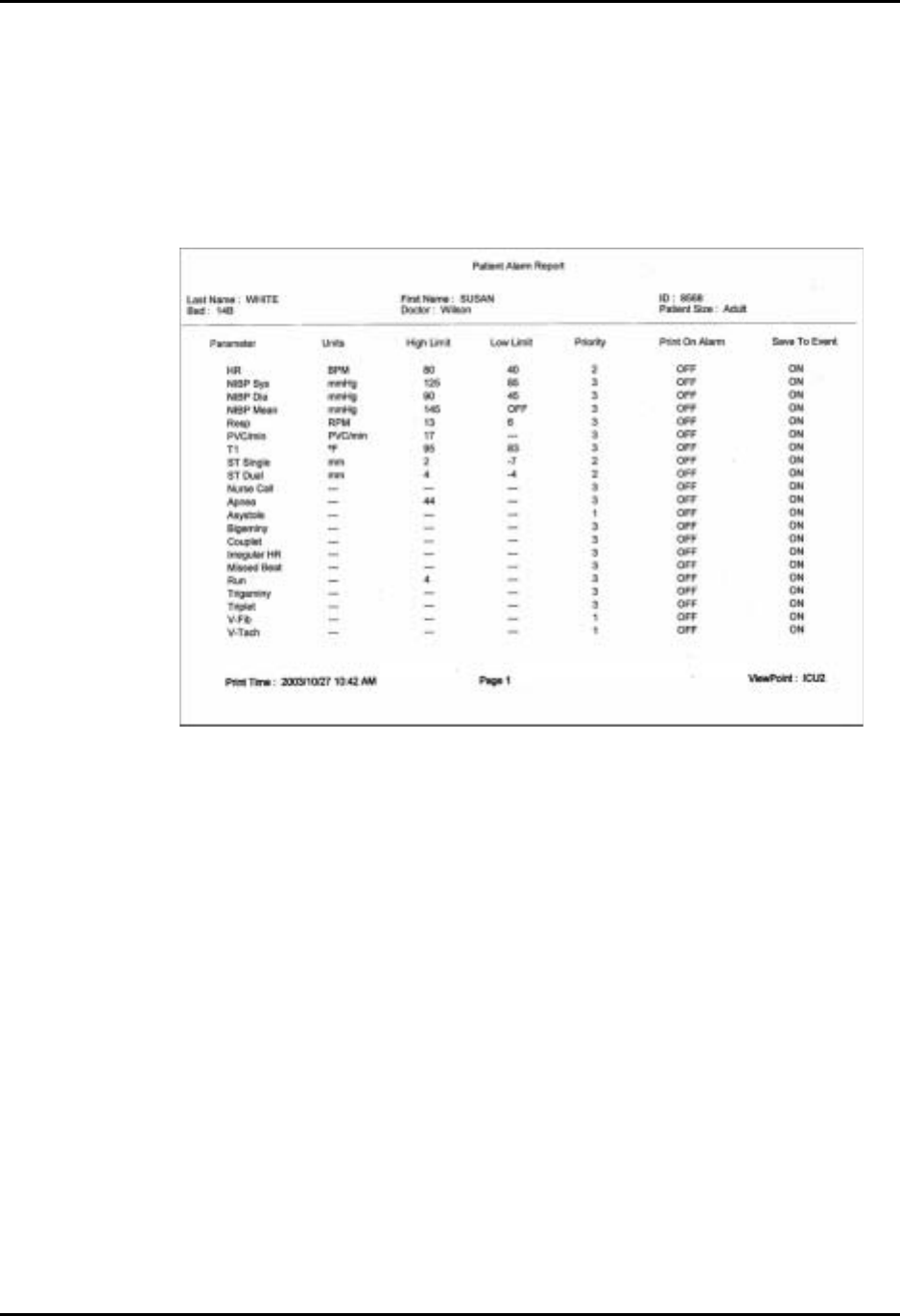FIGURE 8-15 shows an example of the Patient Alarm Report.