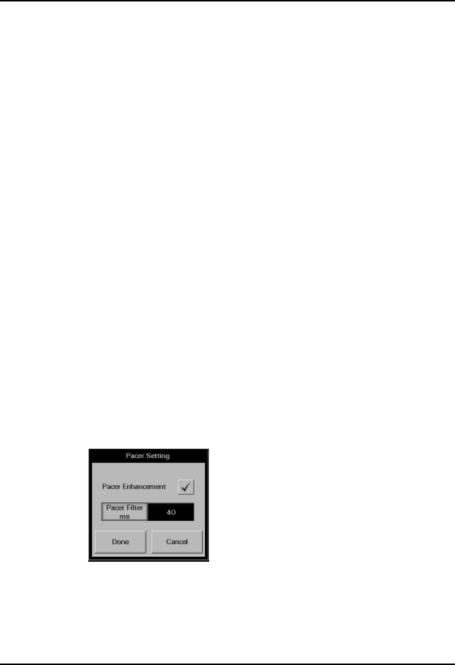 are filtered for ECG sampling. The preset options for the Pacer Filter are 0 to 80 ms (in