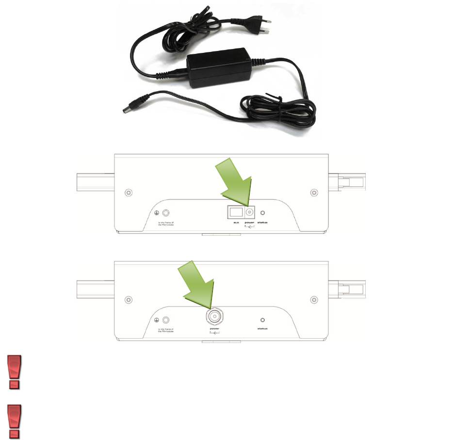 It is important that you only use the included DC power supply. First connect its DC side to the