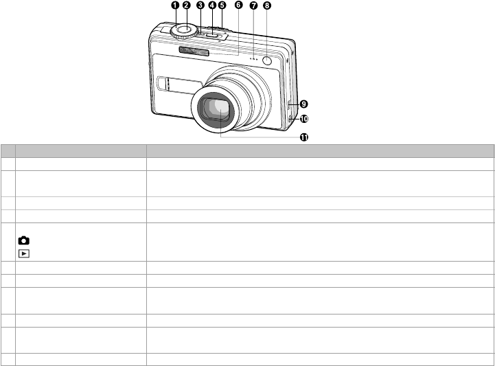 9. USB or A/V OUT terminal Allows you to connect a USB cable or an A/V cable to the camera.