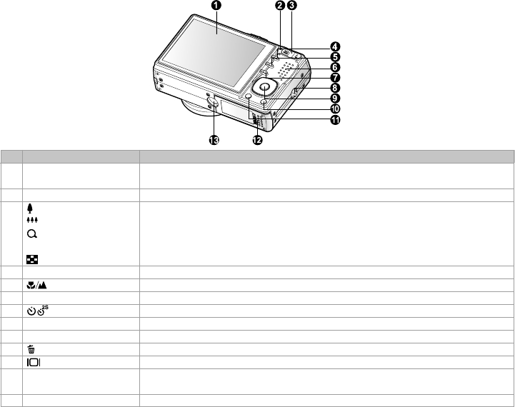7. Self-timer button Allows you to toggle the self-timer on and off, selects the desired self-timer mode.