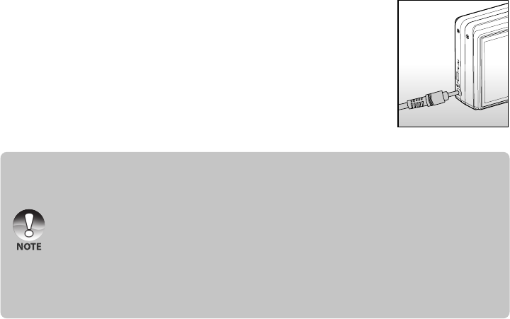 Using the optional AC power adapter may charge the battery or operate the camera as power supply.