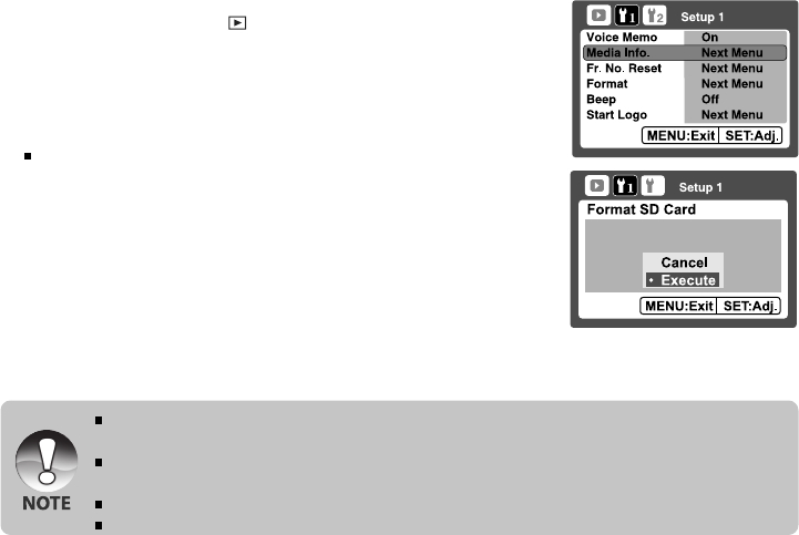 also erased. Before formatting the card, make sure that all the images are unnecessary.