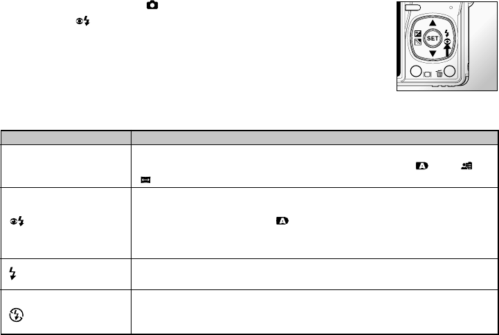 When the camera mode is [ ], [P] and [M], the flash will fire to suit the