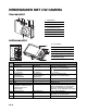 KENNISMAKEN MET UW CAMERA Vooraanzicht 1. Ontspanner 2. ON/OFF Aan/uit-toets 3. Flits 4. Zelfontspanner LED 5. Microfoon 6. Luidspreker 7. Lens Achteraanzicht A. LCD-scherm B. Status-LED C. Oogje voor draagriem D. Usb en AV-UIT-aansluiting E. Accu/geheugenkaartklep F. Statiefaansluiting Item Functie 1. Opnamemodus Ontspanner 2.