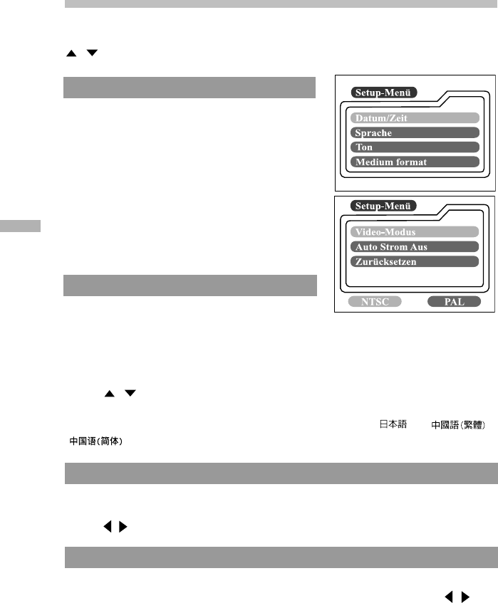 Wählen Sie im Modus SET-UP Ihre allgemeinen Kamera-Voreinstellungen. Stellen