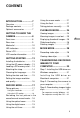 CONTENTS INTRODUCTION ................ 7 Overview ................................. 7 Package contents ................... 7 Using the macro mode ........... 21 Using the flash ........................ 21 Taking pictures manually ........ 23 Optional accessories .............. 7 PLAYBACK MODE ............ 24 GETTING TO KNOW THE CAMERA ........................... 8 Viewing images ....................... 24 Zooming images in and out .... 25 Front view ................................ 8 Rear view ......