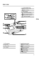 Rear view 1. 2. Arrow button (up) Arrow button (left) Macro button 1 3. ENTER button 4. Arrow button (right) Quick playback button 5. Arrow button (down) Self-timer button 3 4 2 5 E 5 6 1 2 7 8 3 9 4 10 1. 2. 3. 4. LED indicator Viewfinder LCD monitor DC IN jack 5. Telephoto button Zoom in button 6. Wide-angle button Zoom out button 7. Menu button 8. Delete button 9. Display button 10.