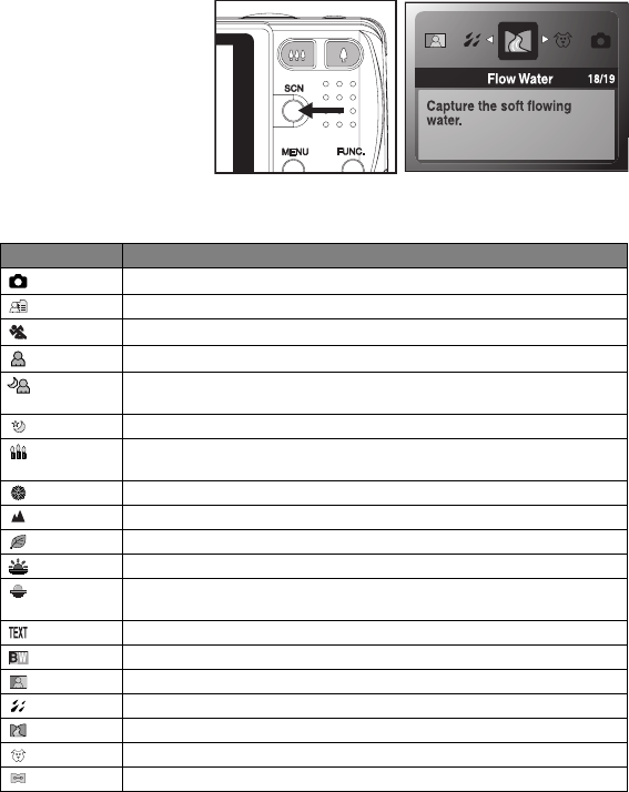 By simply selecting one of the following 19 modes, you can capture the image with the