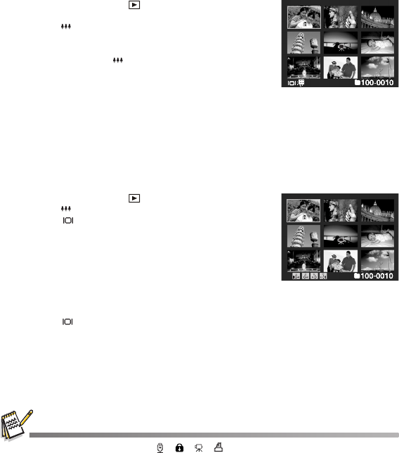 This function allows you to view 9 or 16 thumbnail images on the LCD monitor at the
