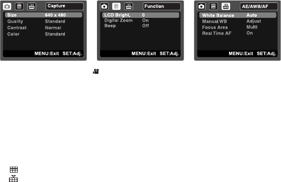 button, and select the [Capture]/ [Function]/ [AE/AWB/AF] menu with the