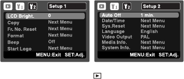 2. Press the MENU button, and select the [Setup 1]/ [Setup 2] menu with the e / f button.