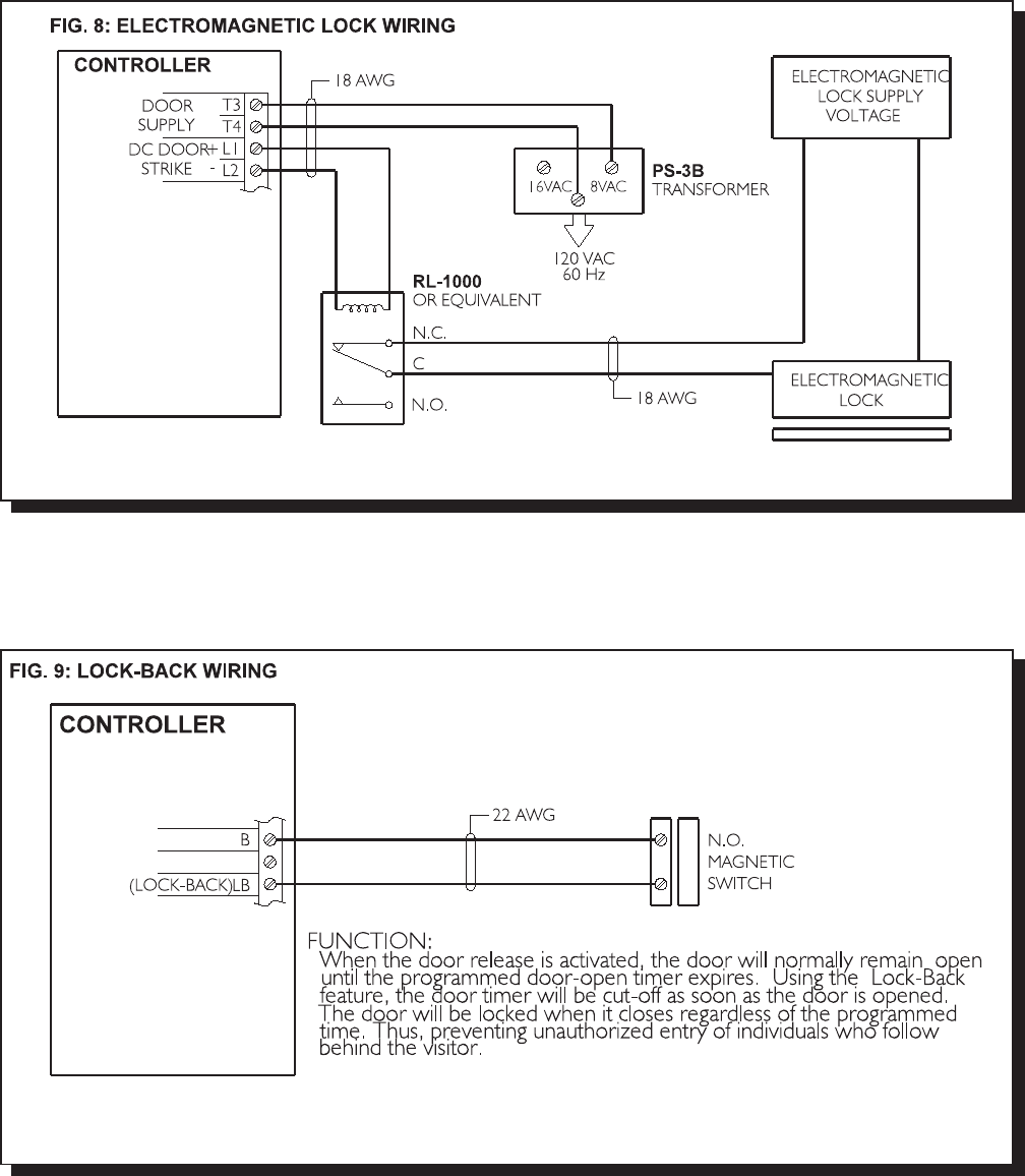 Wire the Lock-Back Switch as shown in FIG. 9 to enable automatic door-open timer cut-off.