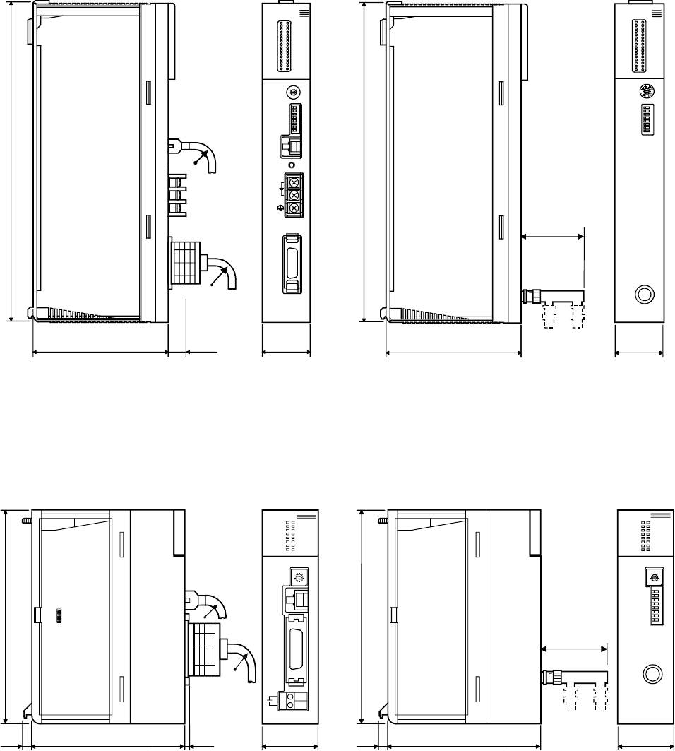 The following diagram shows the A1SJ71QE71N-B5T and A1SJ71QE71N-B2. The dimensions of the