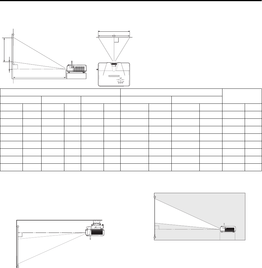 L : Between the screen and the front edge of the projector