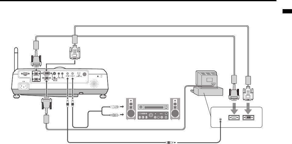• Some computers require additional connectors or analog RGB output adapters to be connected with this projector. Contact your dealer for fur-