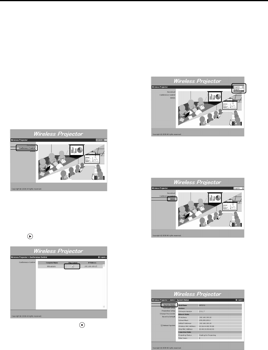 tion status of the projector.