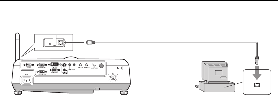 1. Connect one end of the Ethernet cable to the LAN terminal of the projector.