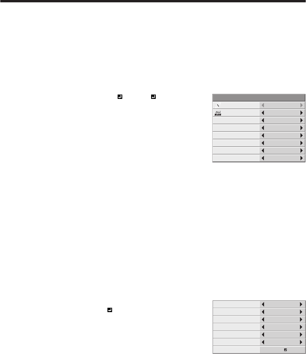 9. Press the t or u button to adjust the selected item.