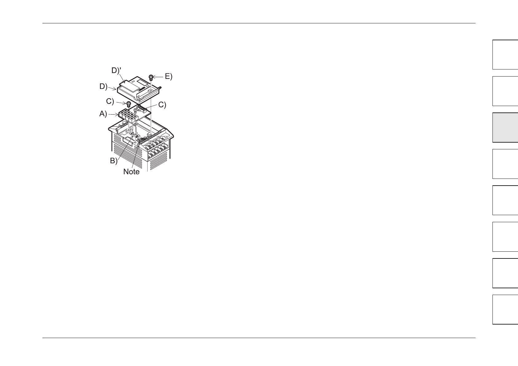 • Attach top cover for board D) removing section D)’ to expose