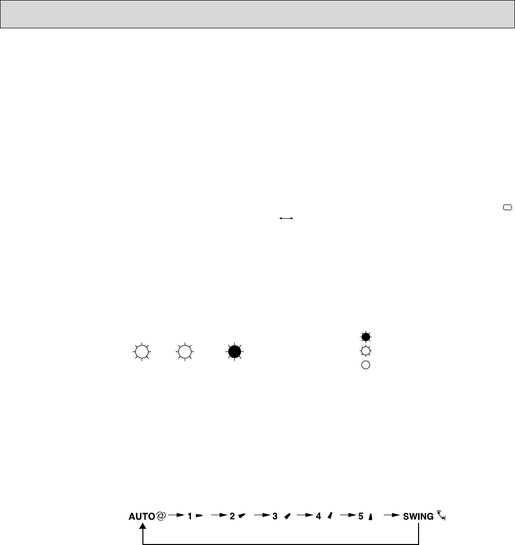 (2) The horizontal vane angle and mode change as follows by pressing VANE CONTROL button.