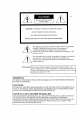 RISK OF ELECTRIC SHOCK DO NOT OPEN CAUTION: TO REDUCE THE RISK OF ELECTRIC SHOCK, DO NOT REMOVE COVER (OR BACK). NO USER-SERVICEABLE PARTS INSIDE. REFER SERVICING TO QUALIFIED SERVICE PERSONNEL. The lightning flash with arrowhead symbol, within an equilateral triangle, is intended to alert the user to the presence of uninsulated "dangerous voltage" within the product's enclosure that may be of sufficient magnitude to constitute a risk of electric shock.