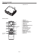 Overview 1 2 3 1 2 3 4 5 6 7 8 9 10 11 12 13 14 4 5 6 789 10 12 13 Lamp cover Lens FOCUS ring ZOOM ring LENS SHIFT dial Remote control sensor (front) Speaker Lock bar Intake vent Control panel Exhaust vent Power jack Terminal panel Kensington Lock Caution: t %P OPU SFQMBDF UIF MBNQ JNNFEJBUFMZ BGUFS VTJOH UIF projector because the lamp would be extremely hot and it may cause burns.