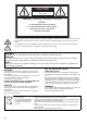 CAUTION RISK OF ELECTRIC SHOCK DO NOT OPEN CAUTION : TO REDUCE THE RISK OF ELECTRIC SHOCK, DO NOT REMOVE COVER (OR BACK) NO USER-SERVICEABLE PARTS INSIDE REFER SERVICING TO QUALIFIED SERVICE PERSONNEL. The lightning flash with arrowhead symbol within an equilateral triangle is intended to alert the user to the presence of uninsulated "dangerous voltage" within the product’s enclosure that may be of sufficient magnitude to constitute a risk of electric shock.