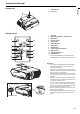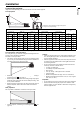 Installation Layout of the projector ENGLISH Image size varies depending on the distance between the screen and the projector. Front projection W B H A Hd A=B L POWER STATUS L : Between the screen and the front edge of the projector Hd : Height of the projected image Screen Diagonal size • Distance from the screen : L Width : W Height : H Shortest (WIDE) Hd Longest (TELE) inch cm inch cm inch cm inch m inch m inch 40 102 32 81 24 61 61 1.5 68 1.7 1.