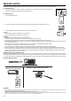 Overview (continued) 2 1 Adjustment feet 2 Lamp cover ENGLISH Bottom side 1 Remote control 1 12 11 2 3 4 10 5 1 ON button 2 KEYSTONE/VOLUME UP, DOWN buttons 3 MENU button 4 Direction buttons 5 ENTER button 6 COMPUTER button 7 VIDEO button 8 FREEZE button 9 AV (Audio/Video) MUTE button 10 ASPECT button 11 AUTO POSITION button 6 9 12 STANDBY button 8 • The UP and DOWN buttons are used in the KEYSTONE adjustment in addition to the volume control.