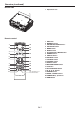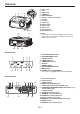 Overview 1 2 3 1 2 3 4 5 6 7 8 9 10 11 12 13 14 4 5 6 789 10 12 13 Lamp cover Lens FOCUS ring ZOOM ring LENS SHIFT dial Remote control sensor (front) Speaker Lock bar Intake vent Control panel Exhaust vent Power jack Terminal panel Kensington Lock Caution: • Do not replace the lamp immediately after using the projector because the lamp would be extremely hot and it may cause burns.