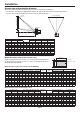 Installation Screen size and projection distance Refer to the following tables to determine the screen size and projection distance. • The figures in the tables are approximate and may be slightly different from the actual measurements. • The lens shift height shows distances from the factory default position.