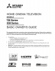 ELECTRIC HOME-CINEMA TELEVISION MODELS 738 Series Series BASIC OWNER'S GUIDE This manual provides basic connection, setup, and operating instructions. Please visit our website at www.Mitsubishi=tv.com to view or download a detailed owner's guide that fully describes the features of this TV. Follow the Support link to the Product Documents page. • For questions: Visit our website at www.mitsubishi-tv.com. E-mail us at MDEAservice@mdea.com.