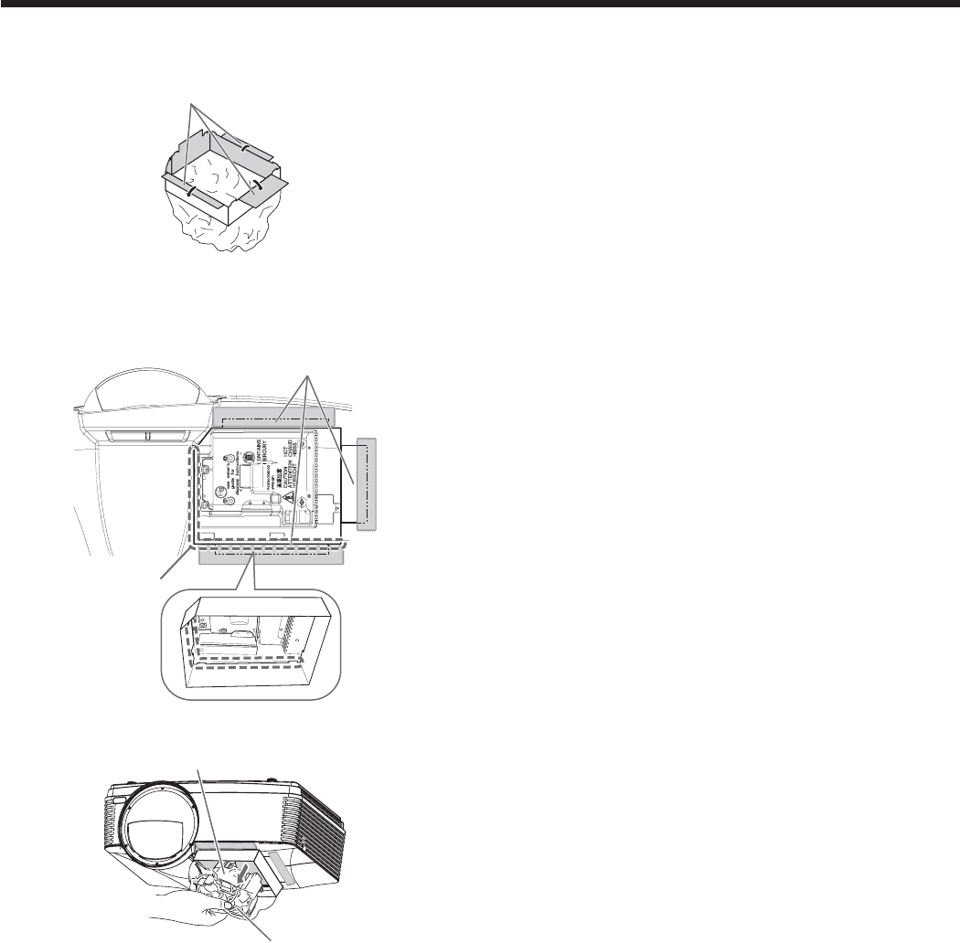 Pull out the lamp unit (f) in the bag by the handle (e).