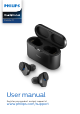 Contents 1 Important safety instructions 2 Hearing Safety General information 2 2 2 Your Bluetooth True wireless earphones What's in the box Other devices Overview of your True wireless earphones 3 Get started Charge the battery Pair the headphones with your mobile phone 4 Use your headphones Connect the headphones to a Bluetooth device Control ANC (active noise cancelation) Manage your calls and music LED indicator status Voice Assistant 3 3 3 4 5 5 5 7 7 7 8 9 9 5 Factory reset the headset 10