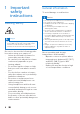 1 Important safety instructions Hearing Safety Danger To avoid hearing damage, limit the time you use headphones at high volume and set the volume to a safe level. The louder the volume, the shorter the safe listening time is. Be sure to observe the following guidelines when using your earpieces. • Listen at reasonable volumes for reasonable periods of time. • Be careful not to adjust the volume continuously upwards as your hearing adapts.