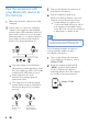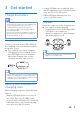 3 Get started Charge the battery 1st blue LED lights stay on and 2nd, 3rd & 4th LED lights turn on successively, flashing once every 1s for 25-50% power 4 blue LED lights flashing every 1s in cycles for 0-25% power Note Before you use your earpieces for the first time, place the earpieces in the charging case and charge the battery for 2 hours for optimum battery capacity and lifetime. Use only the original USB charging cable to avoid any damage.