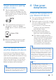 2 Your Bluetooth wireless earpieces Congratulations on your purchase, and welcome to Philips! To fully benefit from the support that Philips offers, register your product at www.philips.com/welcome. With this Philips wireless earpieces, you can: • enjoy convenient wireless handsfree calls; • enjoy and control wireless music; • switch between calls and music.