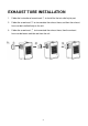 EXHAUST TUBE INSTALLATION 1. Follow the instruction of arrow head ① to Install the Hot air-outlet’s joint part 2. Follow the arrow head ② to circumrotate the exhaust hose, and then the exhaust hose can be installed firmly on the unit. 3.