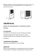 (2) In geval van een gevaarlijk lek, de machine nooit in een vochtige ruimte laten werken. (3) Plaats de machine nooit in een zonnig hoekje, want dan kan ze uitschakelen door oververhitting en de kleur van de machine kan snel vervagen. NUTTIGE AANWIJZINGEN Zorg er voor dat de eenheid niet tegen voorwerpen geplaatst wordt die de luchtinlaat hinderen zoals meubelen of gordijnen aangezien die de werking ernstig zullen verstoren.
