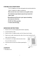 CONTROL PANEL & DESCRIPTION OF FUNCTION Starting the unit 1. Turn the control knob to the “OFF” position. 2. Plug the unit into an appropriate power supply. 3. Turn the control knob to “COOL”, the cooling light is on while the unit is in operation. Turning off the unit 1. Turn the control knob to the “OFF” position and the power supply is cut off, the unit stops operation. a. Low Fan Speed: Turn the control knob to the “ ” position, the unit operates at low fan speed. b.